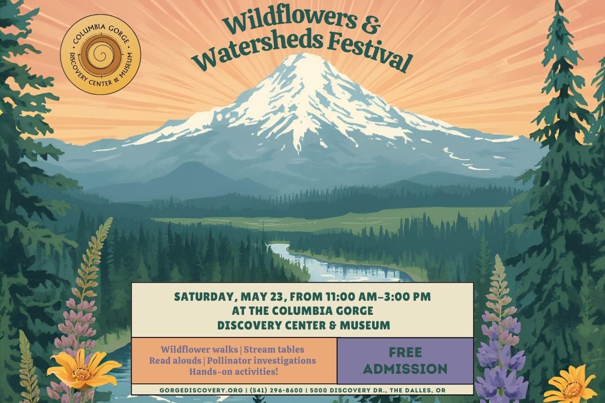 From 11:00 AM to 1:00 PM, guests are invited to explore at their own pace a paved 0.36-mile loop around the museum pond featuring stationed botanists and Oregon Naturalists who will invite you to see with new eyes the native plants, seasonal blooms, and the ecosystems of the Eastern Gorge.